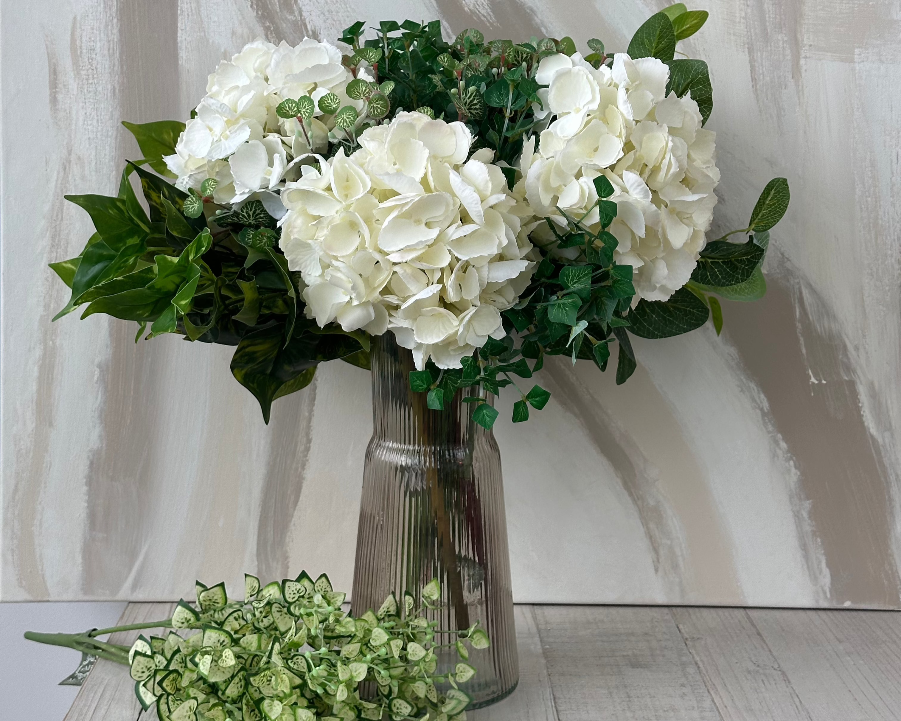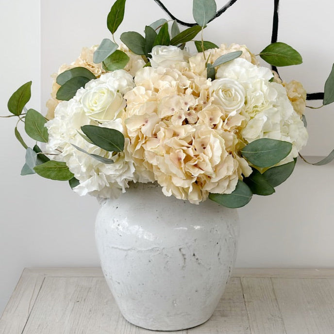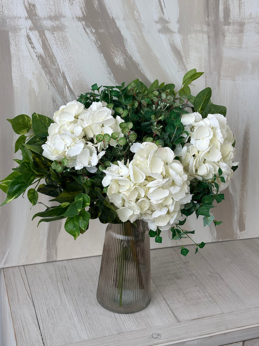 Signature White Faux Wild Spring Hydrangea Arrangement