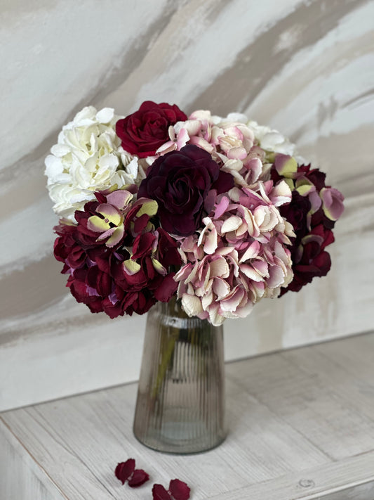 Romance Red and Pink Faux Rose and Hydrangea Arrangement