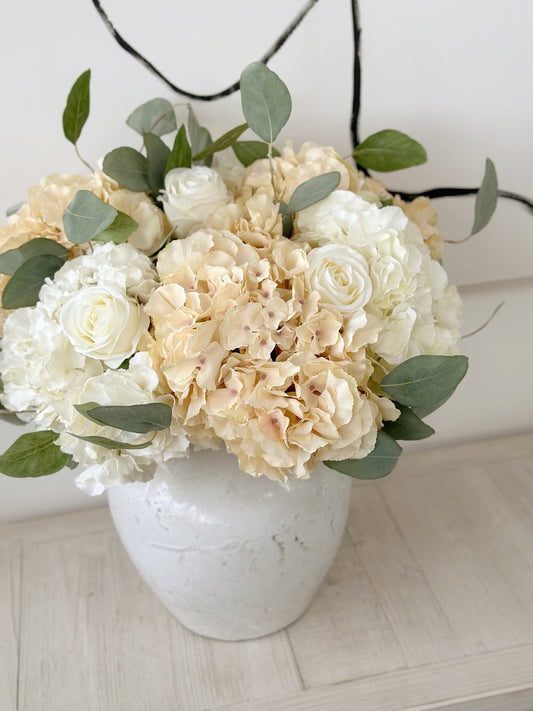 Signature White & Ivory Faux Hydrangea and Rose Arrangement