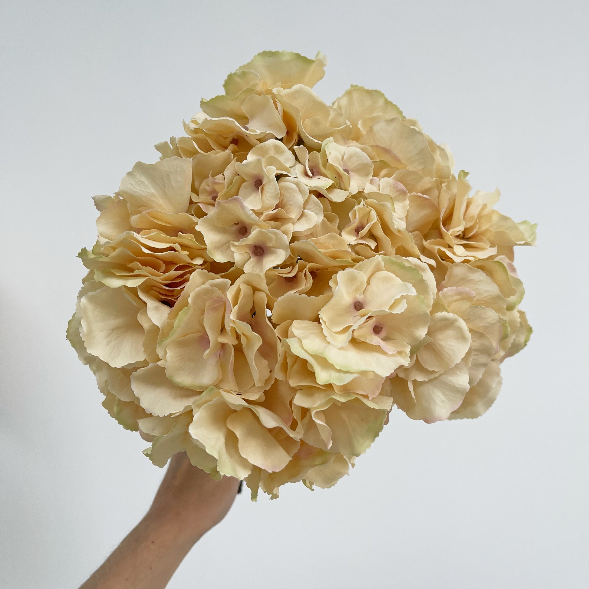 To keep your faux hydrangeas looking their best, dust them regularly with a soft, dry cloth. For a more thorough clean, gently wipe the petals and leaves with a damp cloth. Avoid placing them in direct sunlight to prevent colour fading, and keep them away from areas with high humidity to maintain their shape and longevity.