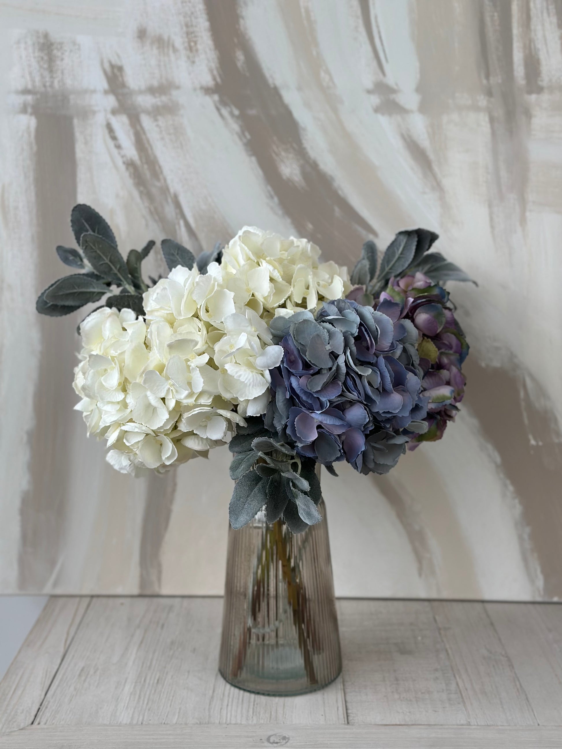 Watercolours Faux Hydrangea and Lambs Leaf Arrangement